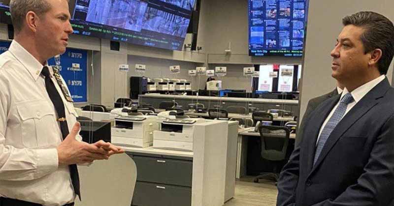 García Cabeza de Vaca fue invitado por las autoridades del NYPD (Departamento de Policía de Nueva York) a recorrer las instalaciones en las que se monitorea la ciudad y se da seguimiento a la actividad criminal e incluso terrorista.