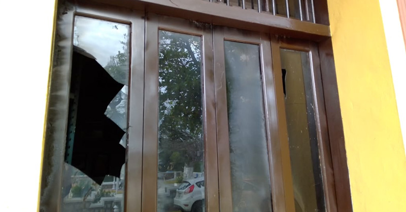Lo anterior debido a que en las puertas del lugar quedaron restos de indicios de fuego y en el interior del edificio algunos muebles y sillas terminaron chamuscadas, los vidrios de las ventanas fueron destrozados y persistía un olor similar a gasolina y pólvora.
