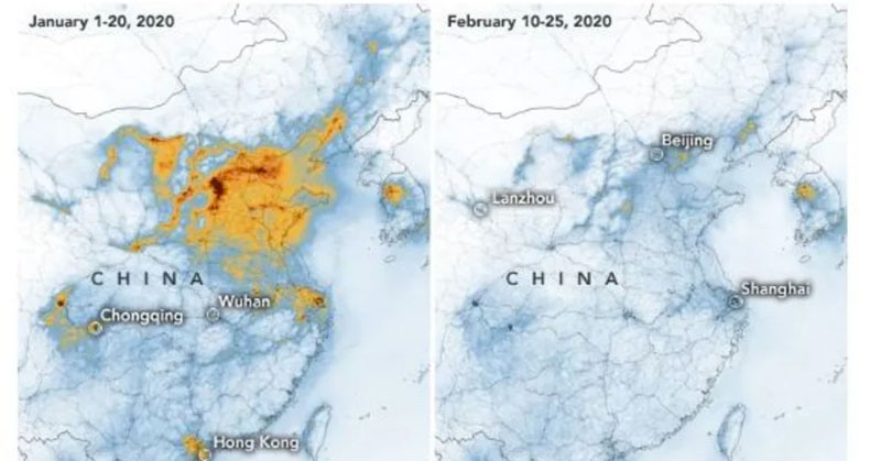 La NASA explicó que la reducción en los niveles de contaminación del aire coincide con la restricción al transporte y las actividades comerciales, mientras que millones de personas en China permanecen en cuarentena.