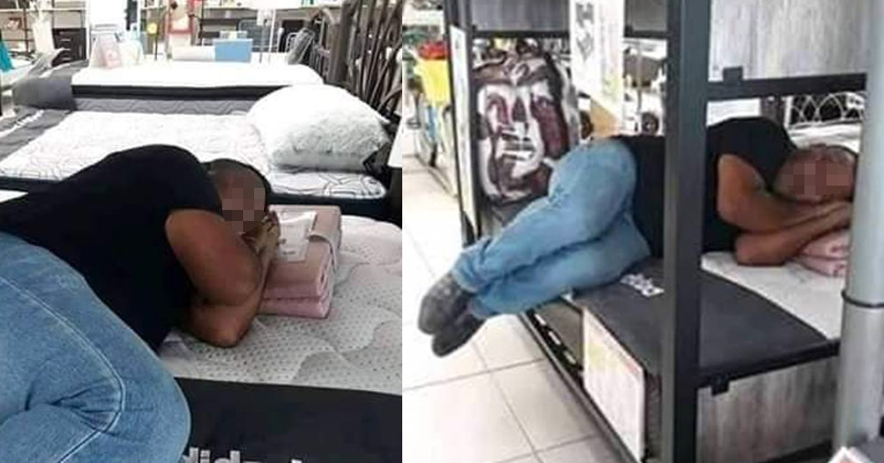 Ebrio se queda dormido en cama de Coppel en Oaxaca