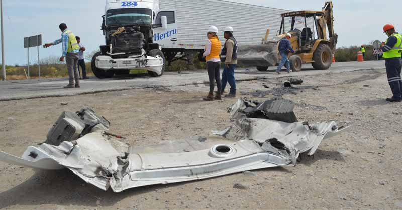 El chofer del tracto camión no se percató de que en un tramo del camino el tráfico era lento a causa de las reparaciones y pegó por alcance