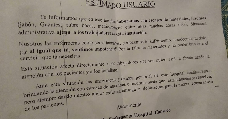 Reparten volantes para explicarle a los usuarios que falta de material no es su culpa.