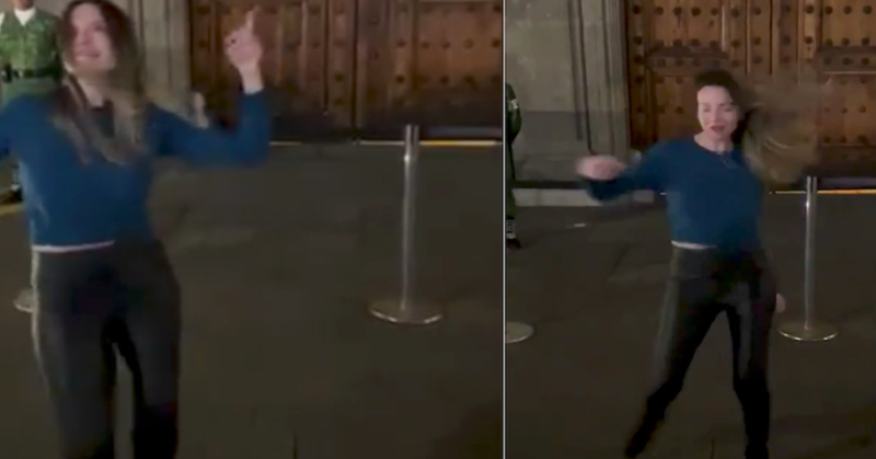 Mujer baila al ritmo del éxito pop “Tusa” frente al Palacio Nacional