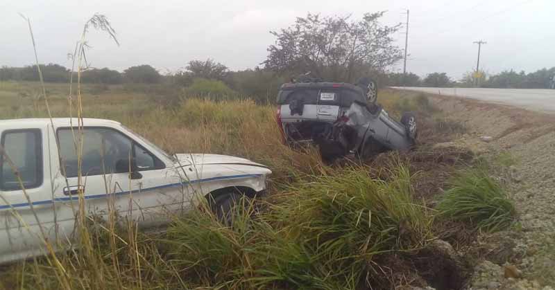 Terminó llantas arriba y la unidad que remolcaba fuera del camino