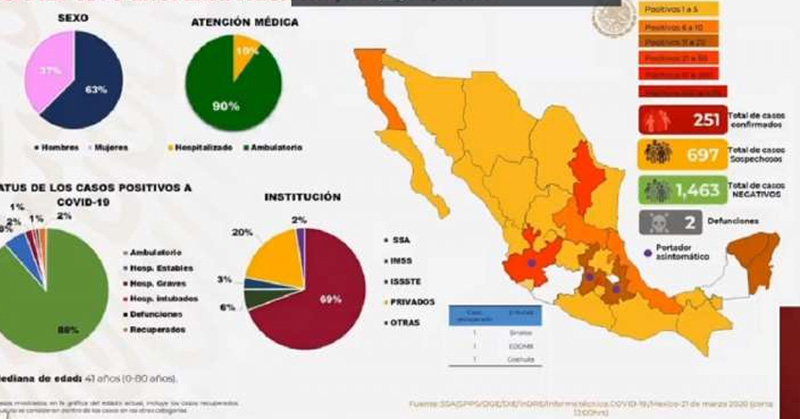 La noche de este sábado 21 de marzo, la Secretaría de Salud confirmó 251 casos positivos por coronavirus Covid-19 en México