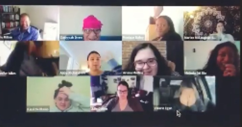 ¡Riesgos de Home Office! Chica olvida desconectarse da mientras va al baño