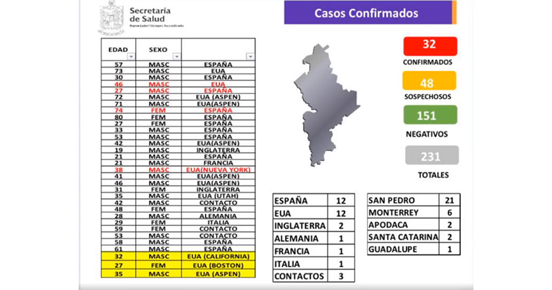 El área metropolitana de Monterrey tiene 6 de sus municipios en estado de emergencia por el Coronavirus, en Nuevo León hay 32 casos.