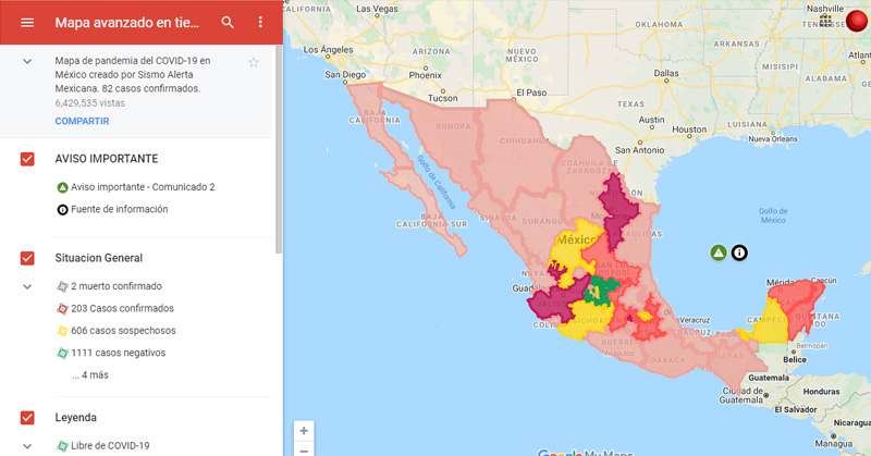 El mapa muestra el panorama general del país ante el Covid-19 con casos confirmados, sospechosos y descartados