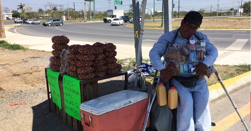 Pese a su problema de salud, diariamente vende productos en el libramiento; ‘se de los riesgos. Pero de aquí saco para comer’