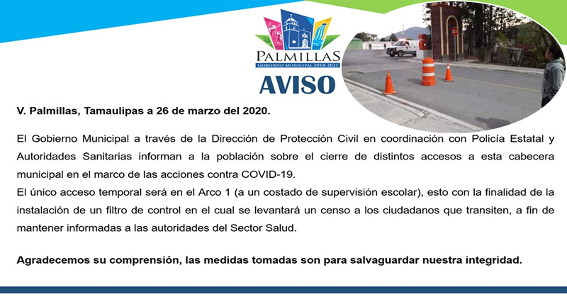 Cierran accesos a Palmillas para evitar que llegue el covid-19
