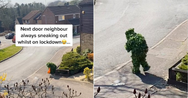 Disfrazado de arbusto, hombre burla la cuarentena por Covid-19
