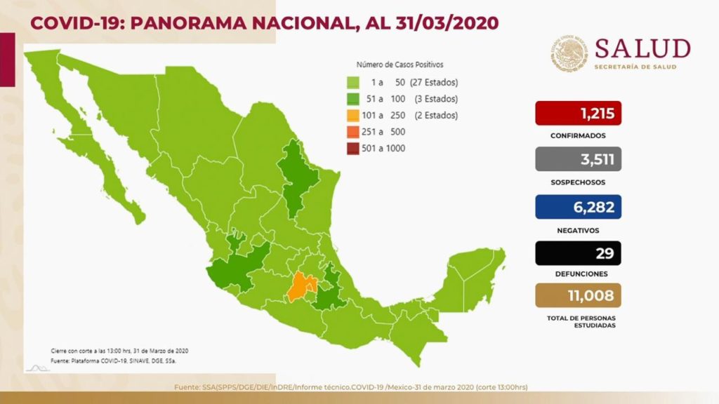 En conferencia de prensa desde Palacio Nacional, José Luis Alomía, director General de Epidemiología de la Secretaría de Salud, precisó que 29 mexicanos han muerto a causa del COVID-19.