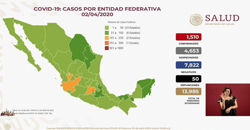 Por covid-19 van 50 muertes y 1,510 enfermos en México