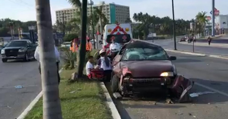 CARRO TUMBA PALMERA Y SE ESTAMPA EN POSTE