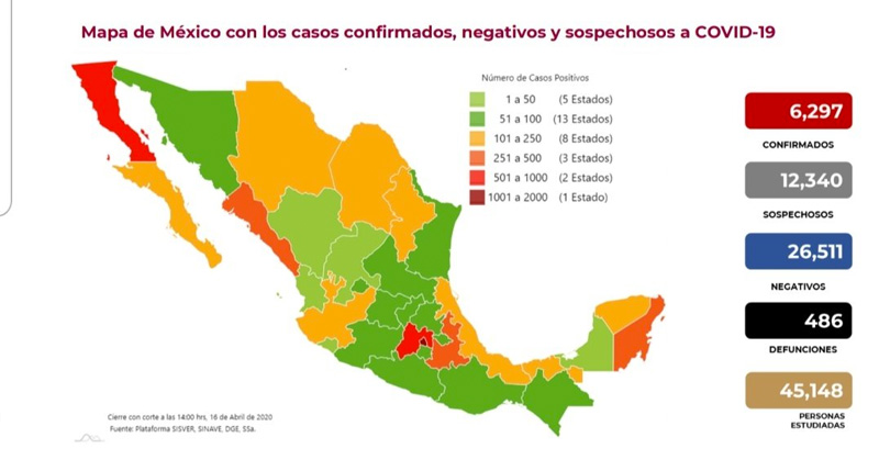 Casos confirmados de Covid-19 suben a 6,297 en México; reportan 486 decesos