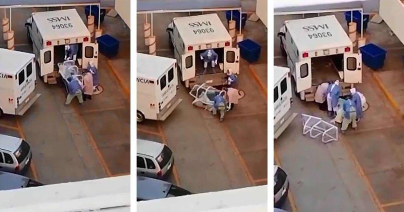 En redes circuló un video donde se observa que cuatro trabajadores del IMSS realizaban las labores de descenso de la ambulancia, cuando ocurrió la caída