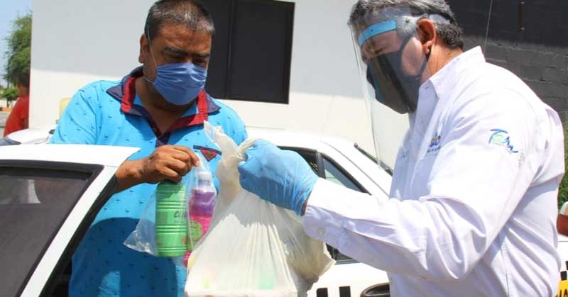 Entrega Victoria, alimentos y kit de limpieza a taxistas y operadores