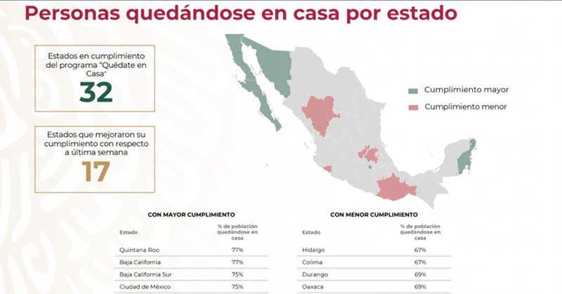 Los estados que menos cumplieron fueron Hidalgo con 67%, Colima con 67%, Durango 69%, Oaxaca con 69% y Querétaro con 69%
