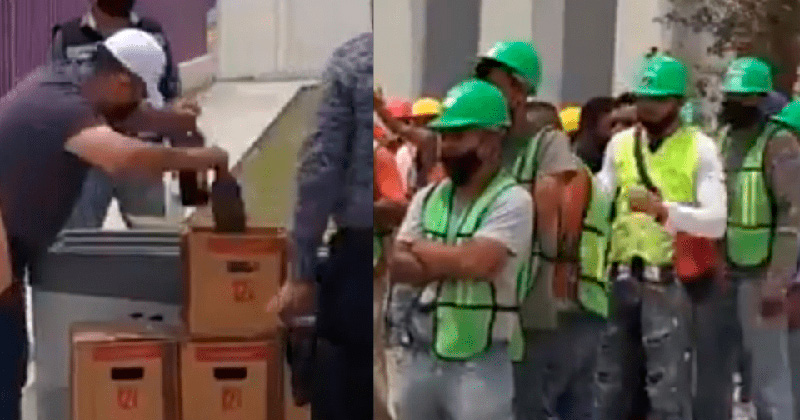 Recompensan con cervezas a albañiles que construyen hospital en NL
