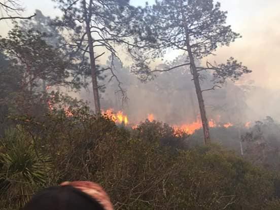 Las llamas han consumido más de 30 hectáreas en el ejido, La Peña, confían que llueva para apagar el fuego