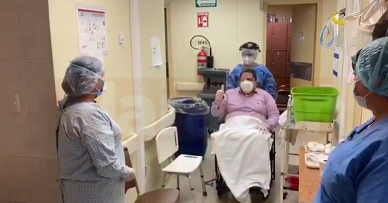 Un plataformero fue despedido entre aplausos por parte del personal médico del Hospital Regional de Petróleos Mexicanos en Ciudad Madero.