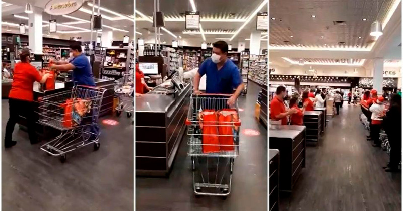 Le aplauden por llevar vestimenta quirúrgica en el supermercado