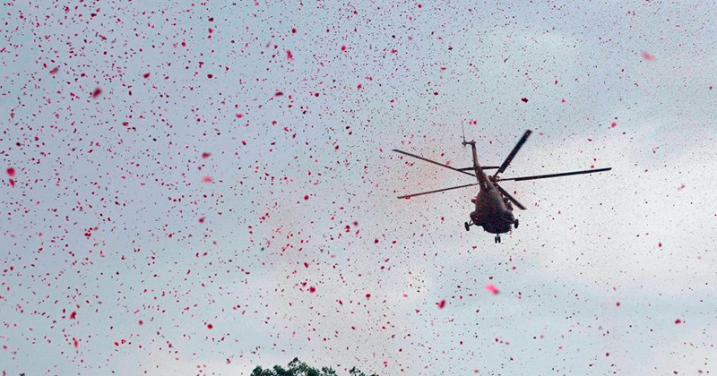 Helicóptero lanza pétalos para agradecer a policías labor durante pandemia