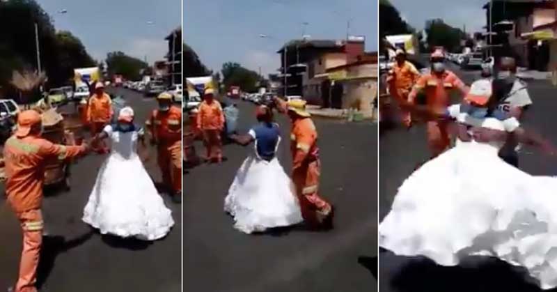 VIDEO. Trabajadores de limpia hallan vestido y simulan baile de XV años