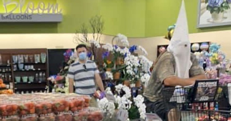 Hombre acude al supermercado con capucha del Ku Klux Klan