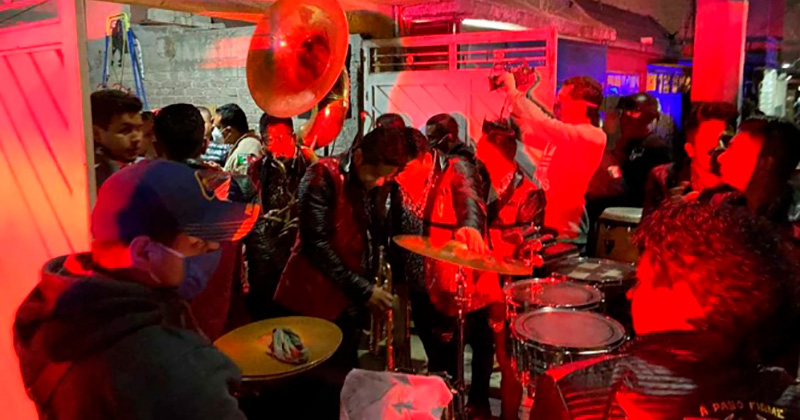 Personal del Gobierno realizaba un operativo para inhibir la presencia de las personas en la calle, cuando detectó un festejo con banda en la colonia Izcalli Santa Clara