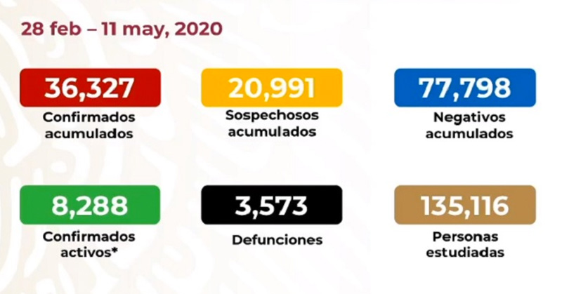 La Secretaría de Salud dio este lunes 11 de mayo el reporte diario sobre las cifras de muertos y casos de contagio