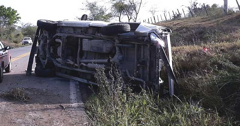 Tráiler impacta y vuelca camioneta