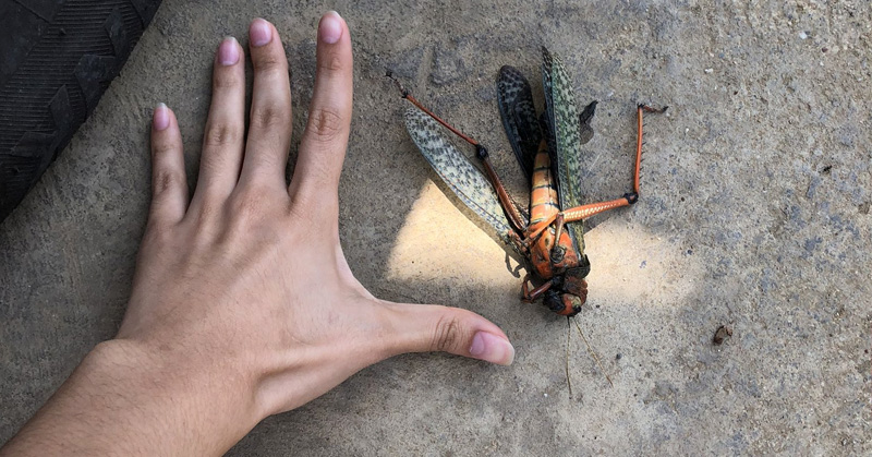 En plena pandemia, aparece aterrador langostón en el patio de una casa