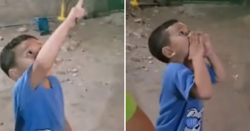 Graban a niño gritándole a una estrella porque ahí está su mamá