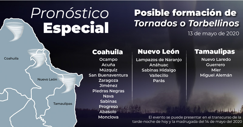 Nuevamente alertan por formación de tornados en el norte de Coahuila, Nuevo León y Tamaulipas