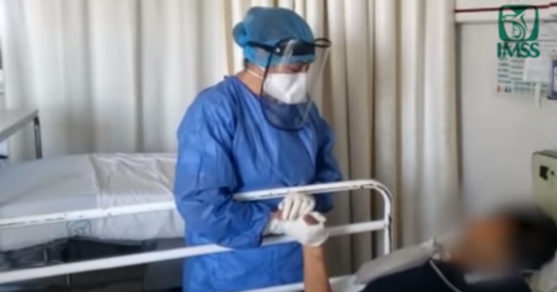 Un video publicado en redes sociales muestra a una enfermera del IMSS cantando a pacientes con COVID-19 para animarlos
