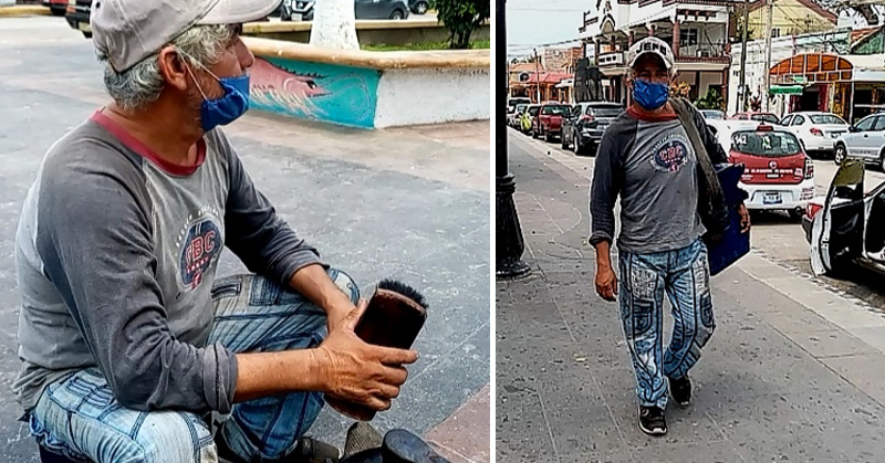 Desempleado ahora lustra calzado
