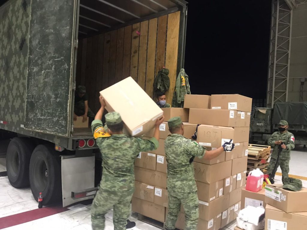 El material salió del aeropuerto de la Ciudad de México y vía terrestre serán distribuido los insumos y equipos médicos a las Unidades Operativas