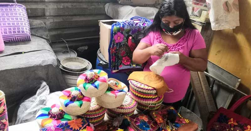 Artesana oaxaqueña cambia cubrebocas por despensas