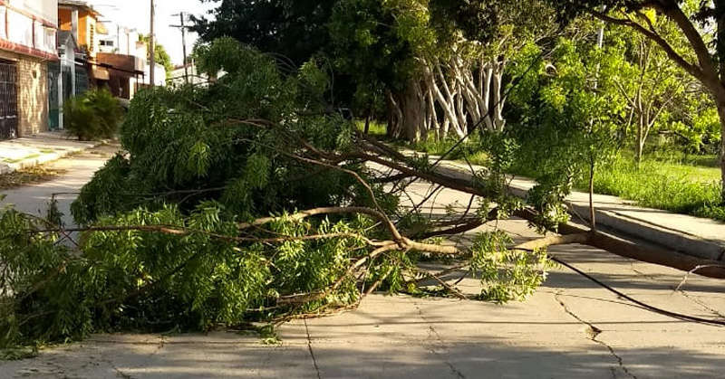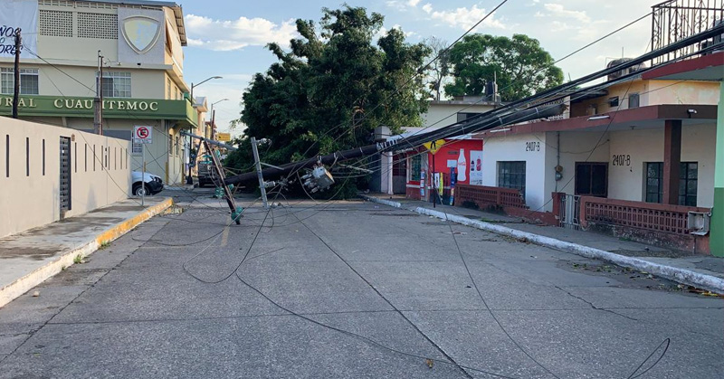 Postes y árboles caídos dejó el fuerte viento en Ciudad Madero