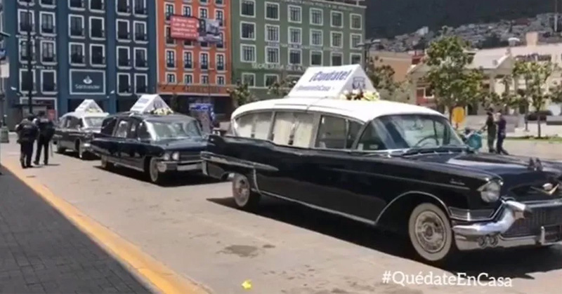 Con desfile fúnebre exhortan a quedarse en casa, en Pachuca