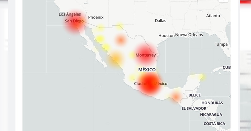 La falla en la red de la compañía se ha concentrado en la zona metropolitana de la Ciudad de México, Monterrey y Tijuana, algunas de las principales zonas urbanas del país.