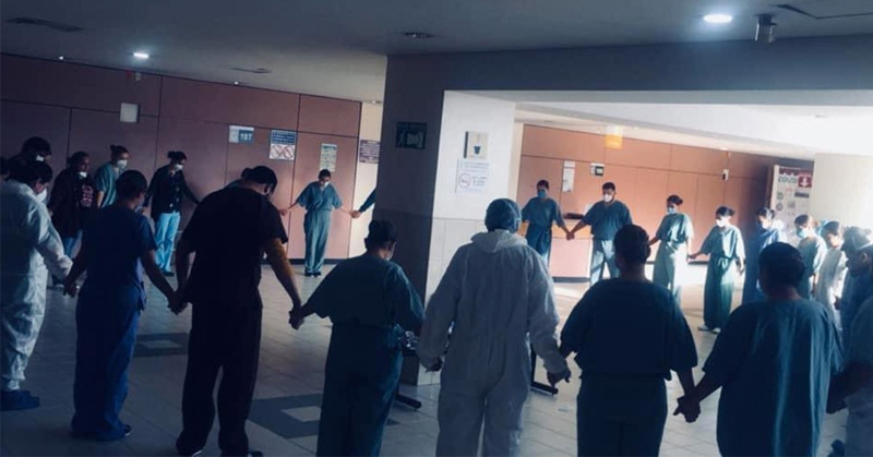 Captan a personal del IMSS rezando antes de atender a pacientes COVID