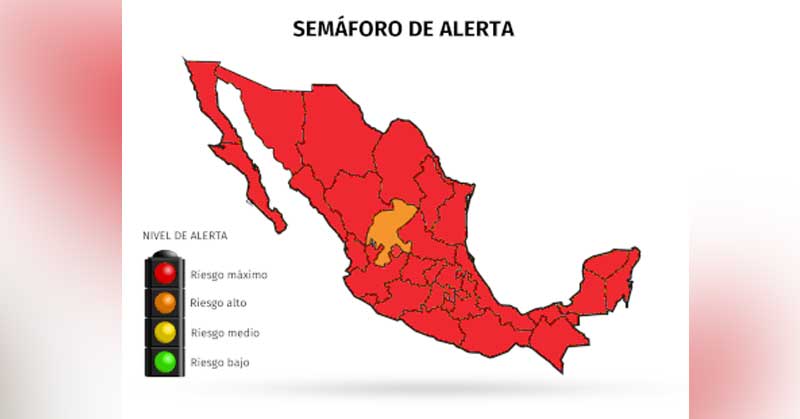 Solo Zacatecas está en naranja “riesgo alto”, mientras que llevamos 81,400 casos positivos y 9,044 defunciones
