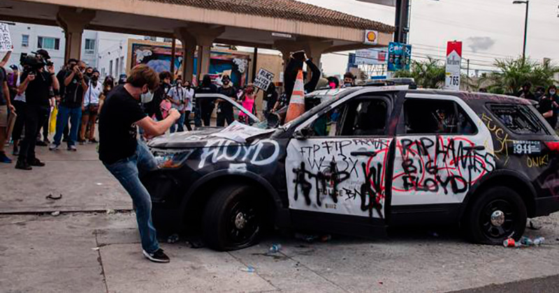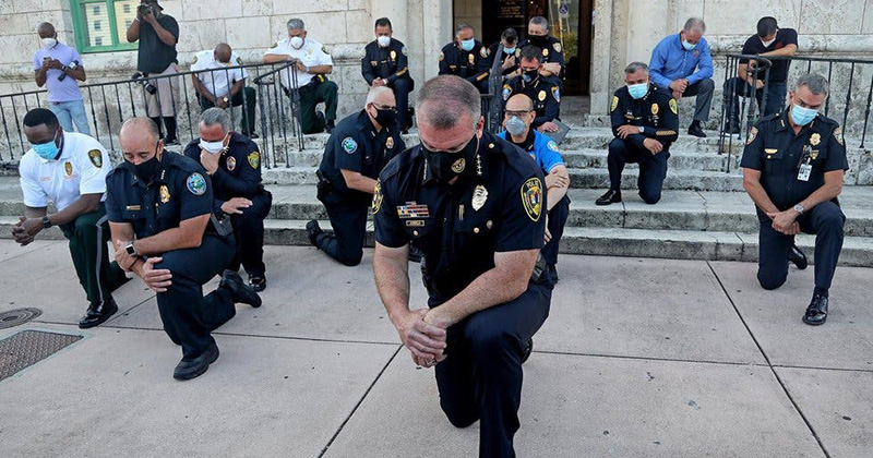 En redes sociales circulan imágenes de agentes arrodillados para pedir perdón a los manifestantes que han desatado el caos en varias ciudades de la estadounidenses