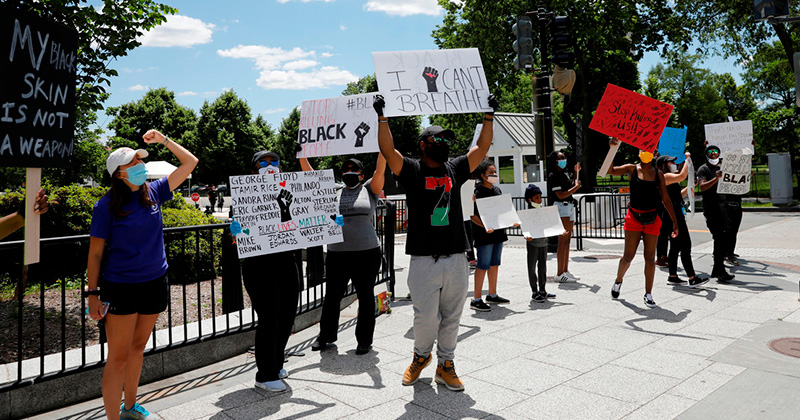 Los agentes de un municipio de Míchigan se quitaron el casco, dejaron las porras en el suelo y marcharon junto a la multitud