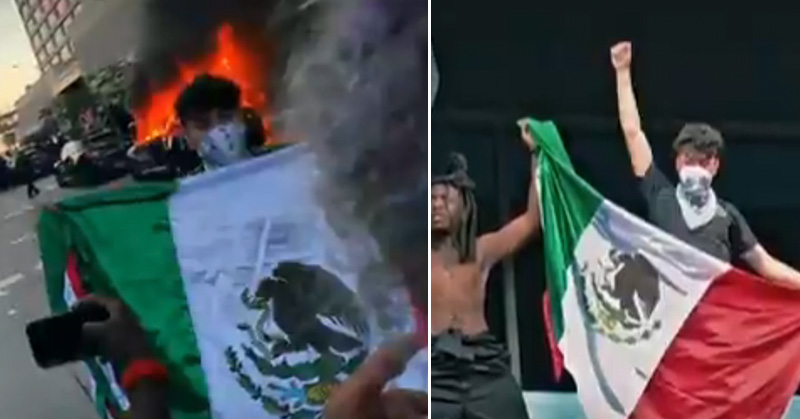 La bandera de México ha aparecido en las protestas en Estados Unidos, lo que ha sido interpretado como la unión de minorías contra la discriminación.