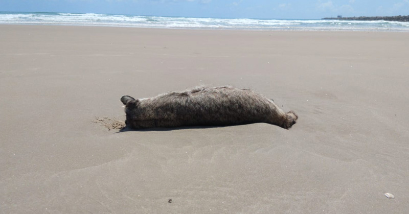Un mapache, apareció muerto este viernes a la altura de la torre uno de salvavidas en Playa Miramar, cerca de las escolleras.