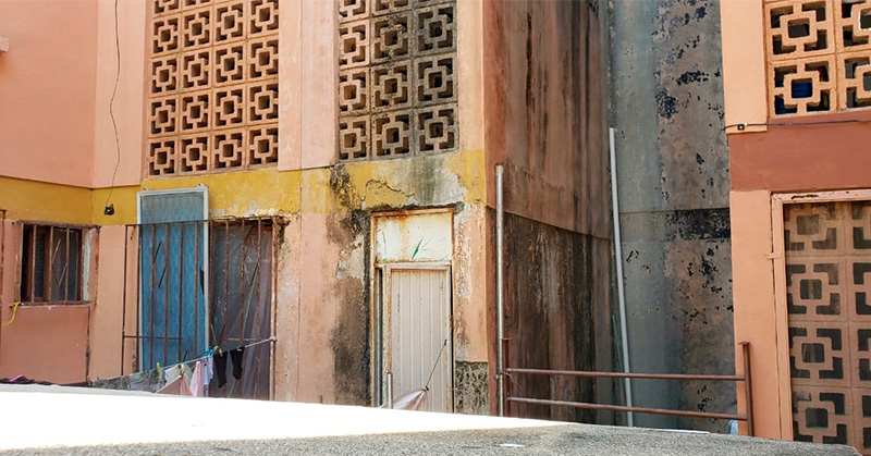 En este emblemático conjunto habitacional con 10 edificios viven 160 familias que padecen falta de agua y por pésimo estado de los edificios que están cercados por maleza y basura
