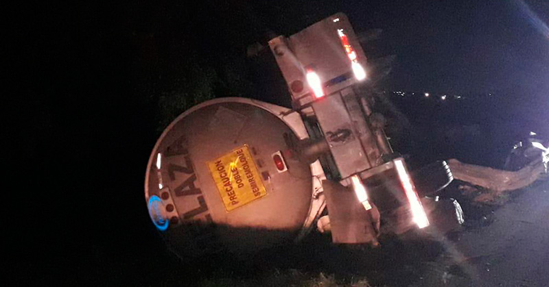 TAMPICO.- Una pipa que transportaba melaza se volcó la noche de ayer en peligroso tramo del libramiento poniente en Tampico.